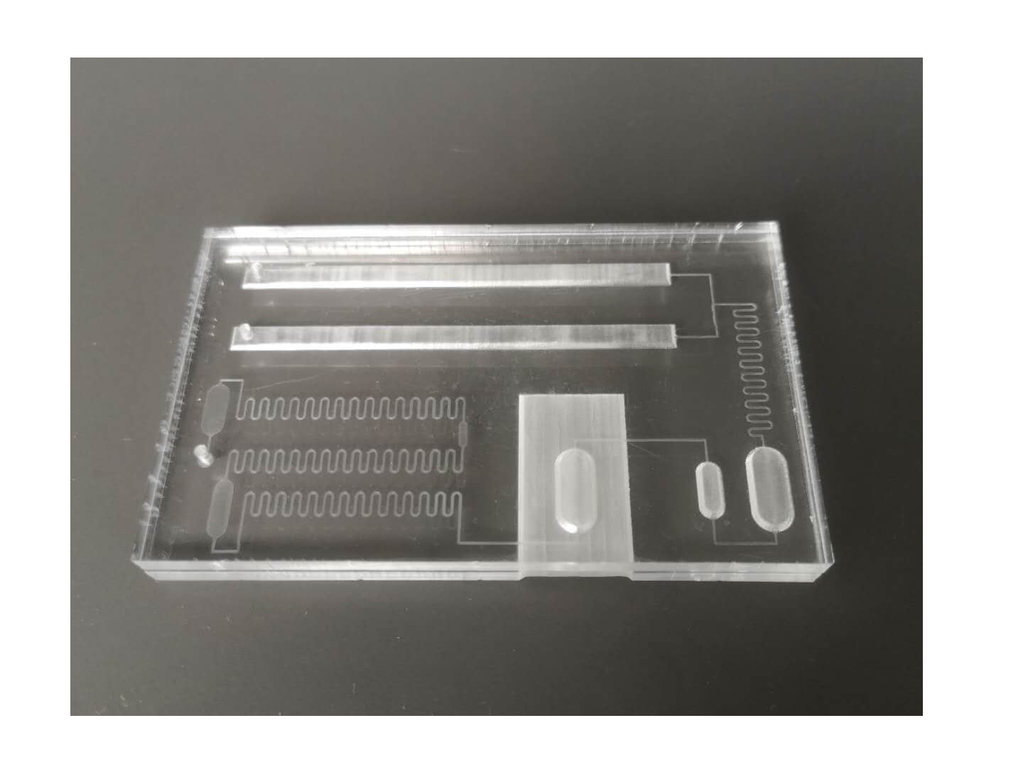 微流控芯片采用類似半導體的微機電加工技術在芯片上構建微流路系統,將實驗與分析過程轉載到由彼此聯系的路徑和液相小室組成的芯片結構上,加載生物樣品和反應液后,采用微機械泵。電水力泵和電滲流等方法驅動芯片中緩沖液的流動,形成微流路,于芯片上進行一種或連續多種的反應。激光誘導熒光、電化學和化學等多種檢測系統以及與質譜等分析手段結合的很多檢測手段已經被用在微流控芯片中,對樣品進行快速、****和高通量分析。微流控芯片的****特點是在一個芯片上可以形成多功能集成體系和數目眾多的復合體系的微全分析系統。微型反應器是芯片實驗室中常用的用于生物化學反應的結構,如毛細管電泳、聚合酶鏈反應、酶反應和DNA 雜交反應的微型反應器等。