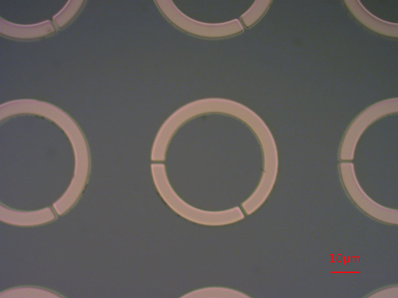圖中是在PET材料上制作的環形電極,電極縫隙開口2μm,電極厚度120nm